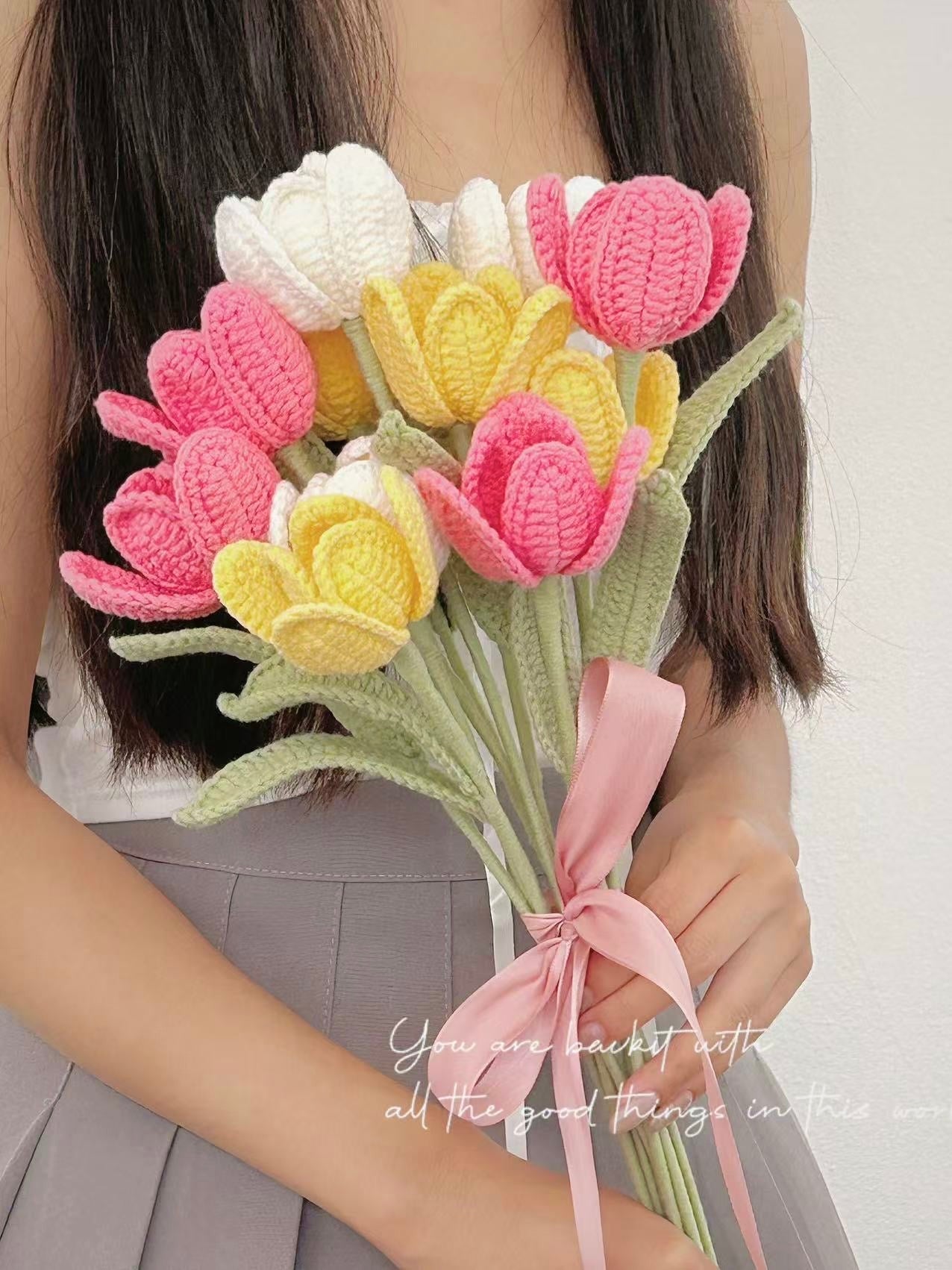 Experience a burst of colour with our multi-colored crochet flower bouquet. Each...
