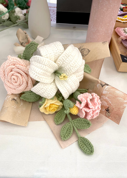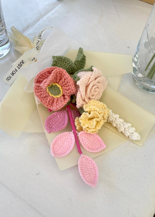 Embrace the sweetness of our Pink Crochet Flower Bouquet. Handcrafted with care, these charming flowers in shades of pink add a touch of nature's beauty to any space. Perfect for gifting or as a lovely decorative accent